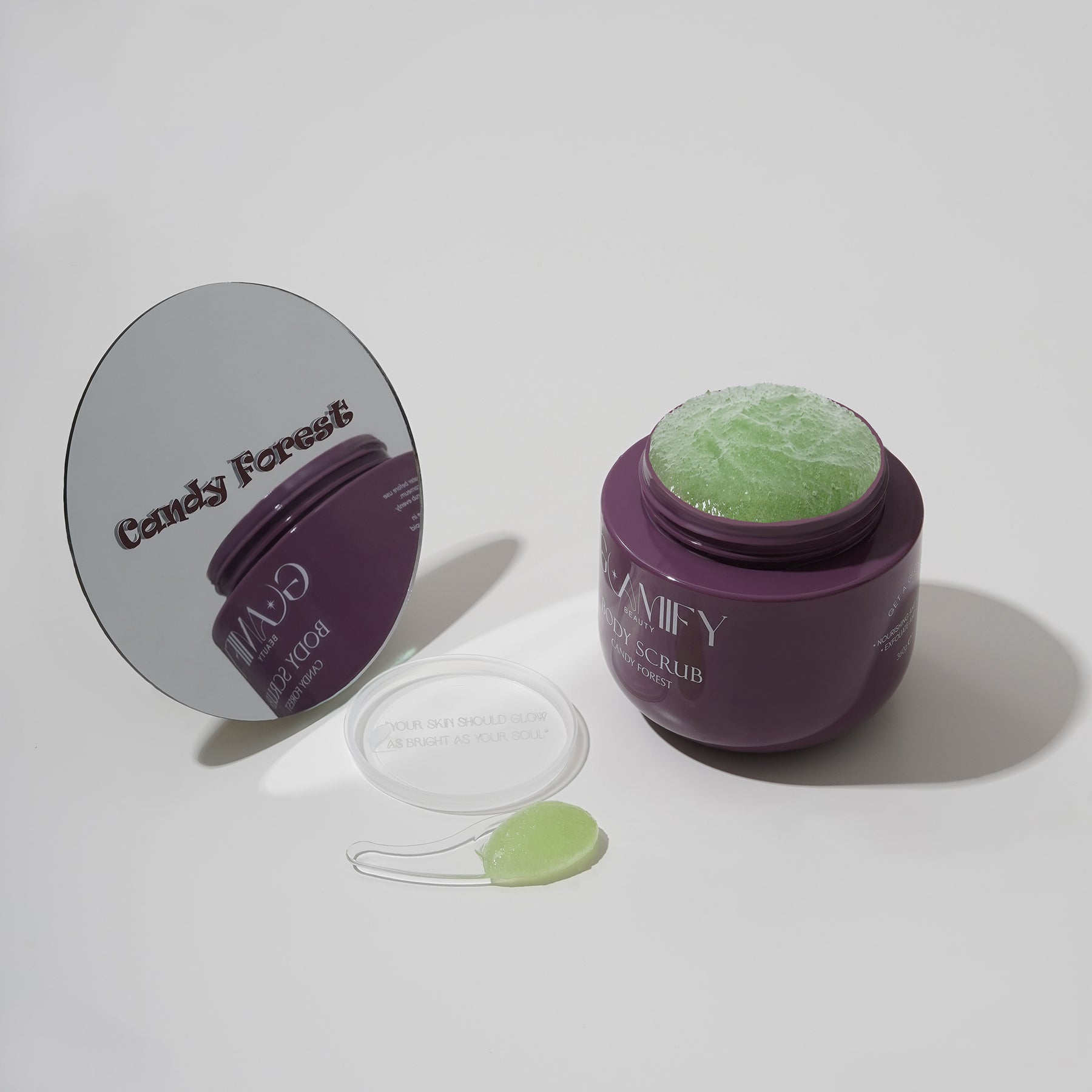 This scrub has a sweet, delicious birthday cake scent, making your skin smell irresistible. With almond oil and vitamin E, it deeply moisturizes and softens, leaving your skin feeling smooth and hydrated. Suitable for daily use, it works for all skin types, giving you a soft, nourished feel all day long.